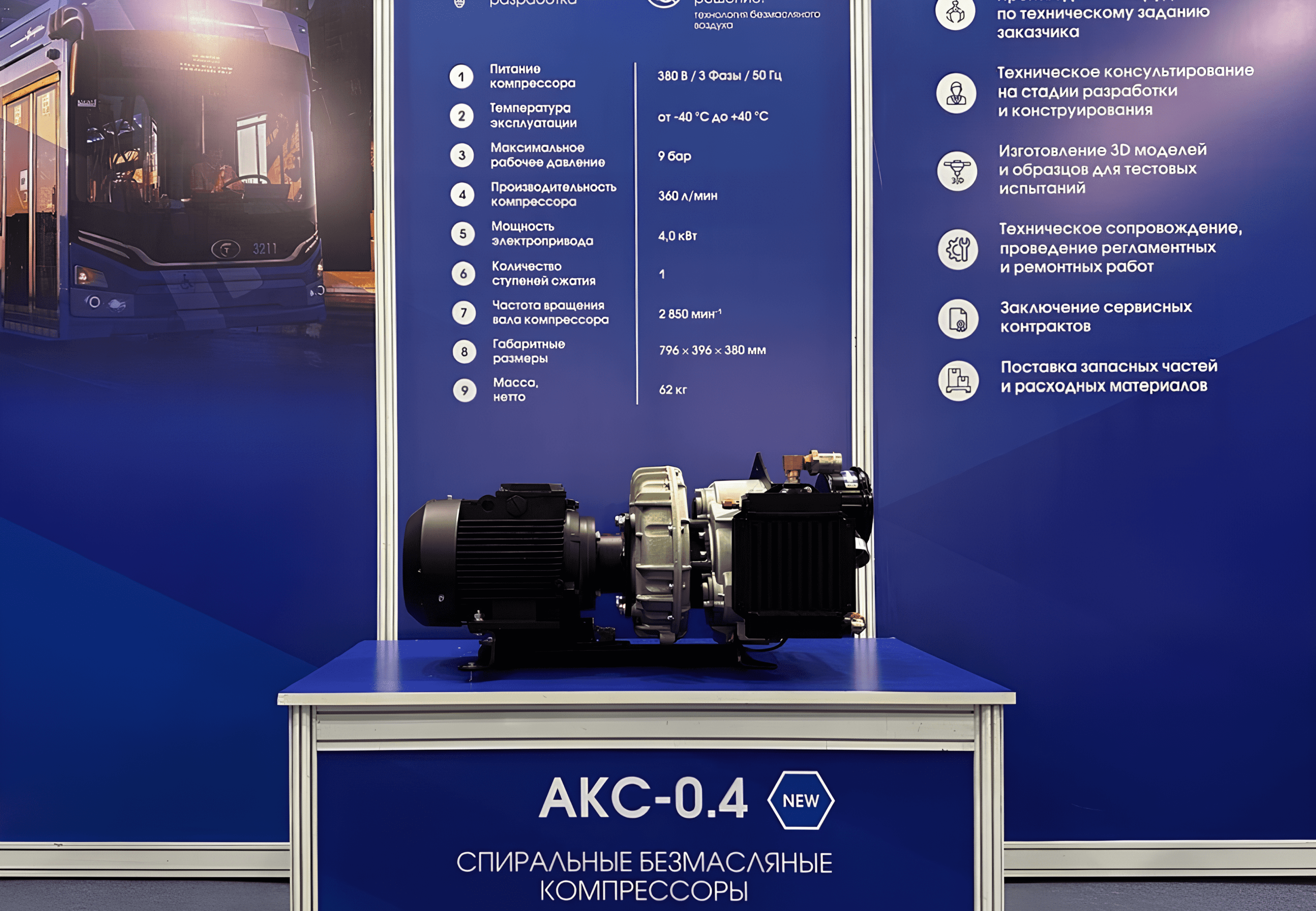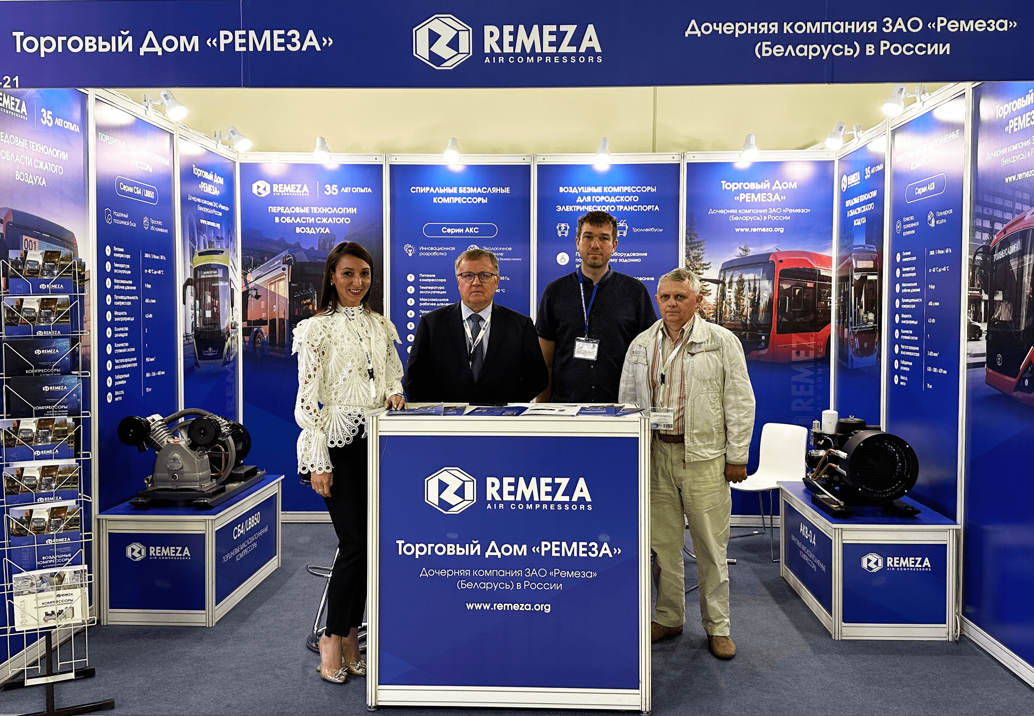Торговый Дом «РЕМЕЗА», дочернее представительство ЗАО «Ремеза» (Беларусь) в России, представлял на выставке «ЭлектроТранс 2024» продукцию завода: спиральный компрессор АКС-0,4; поршневой компрессор LBB50; винтовой компрессор АКВ-0,4.
